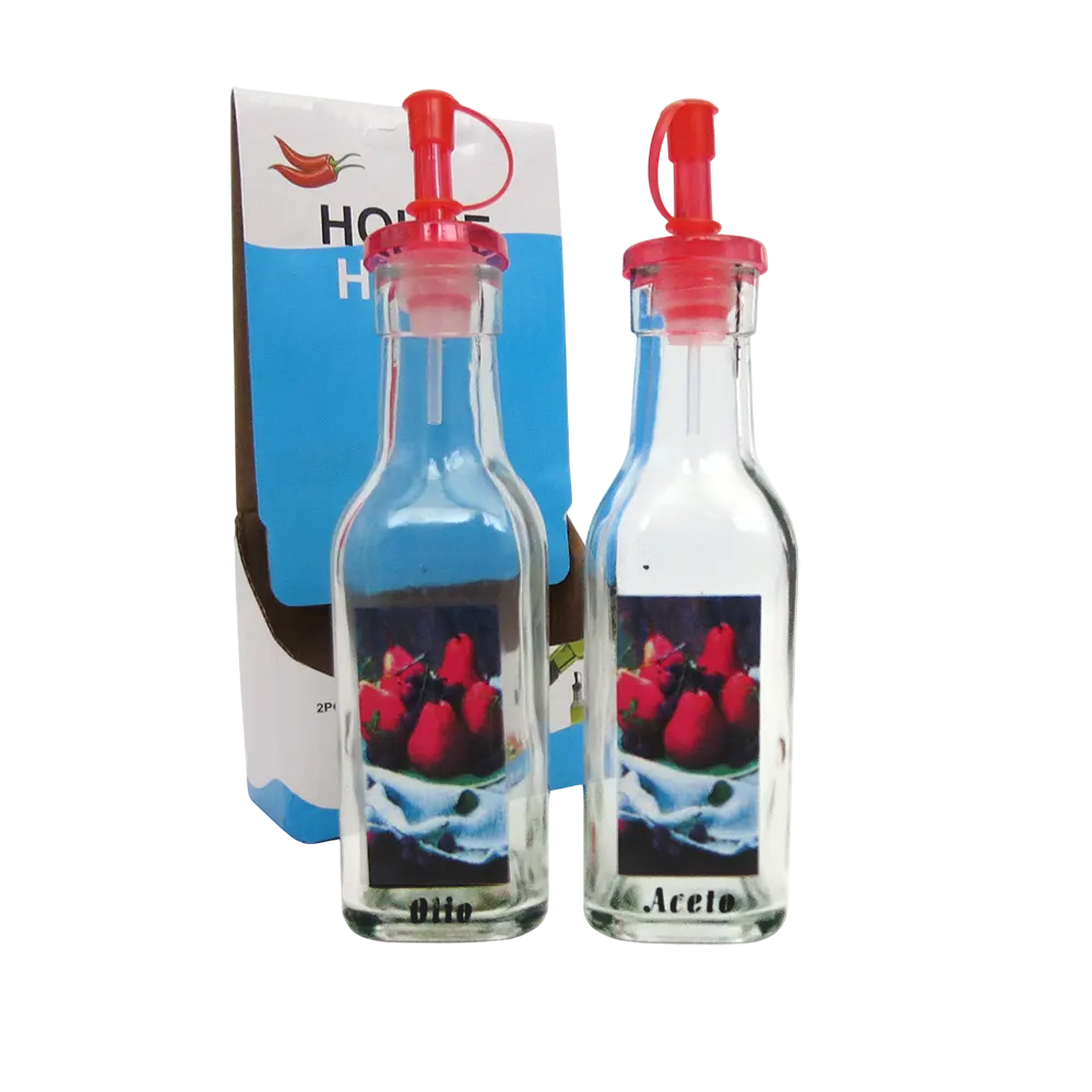 Aceitera y vinagrera vidrio x 2 unid 200 ml 19,5×5,5cm