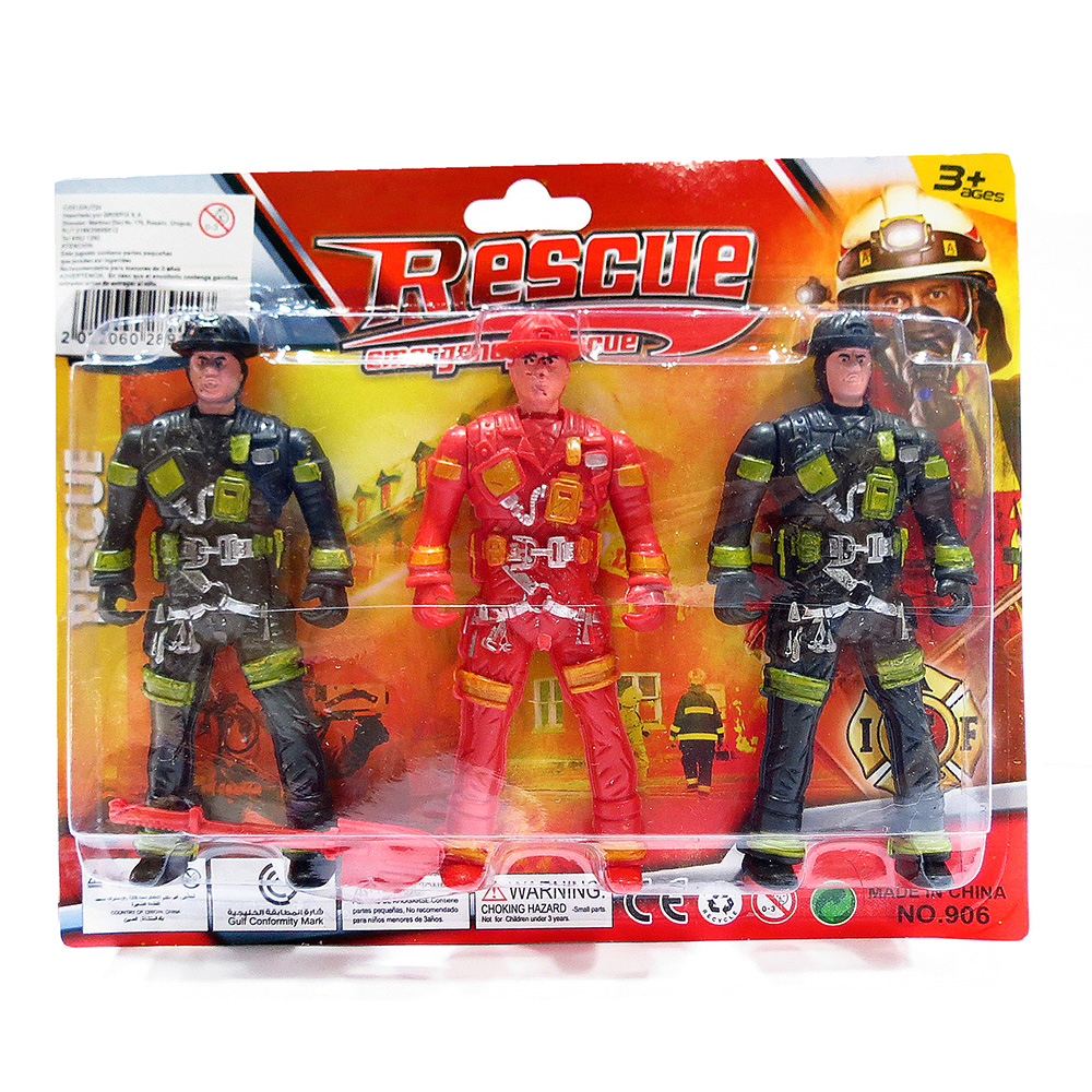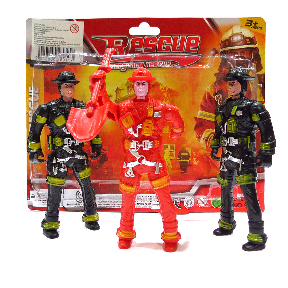 Blister Bomberos + 3 muñecos Rescue (13 x 3cm)