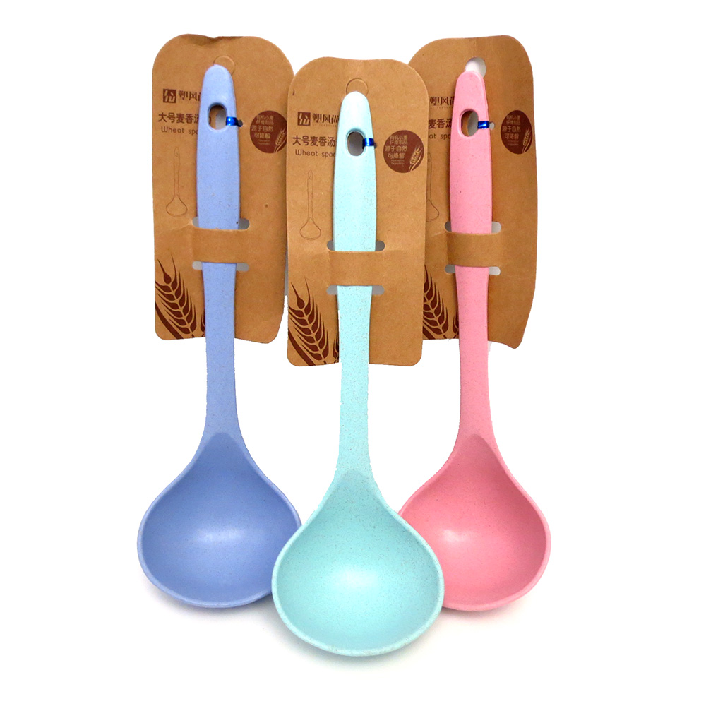 Cucharón plástico color, 28 x 9 cm