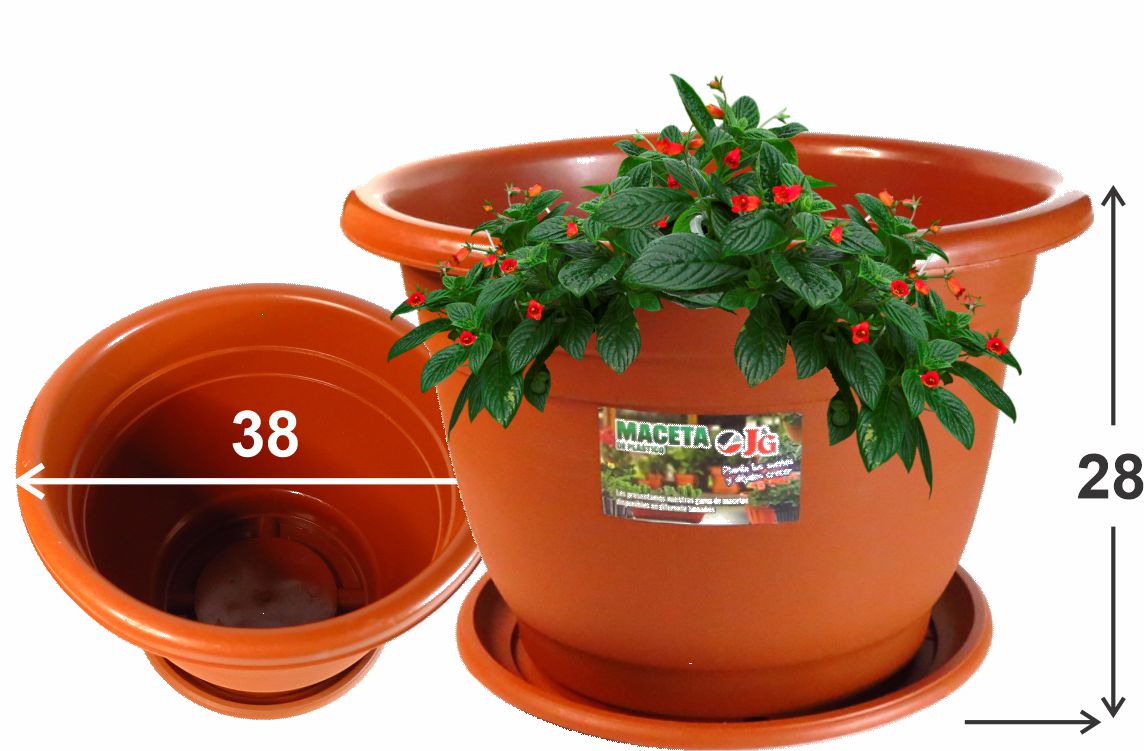 Maceta económica JyG plástico c/plato, 38 x 28 cm