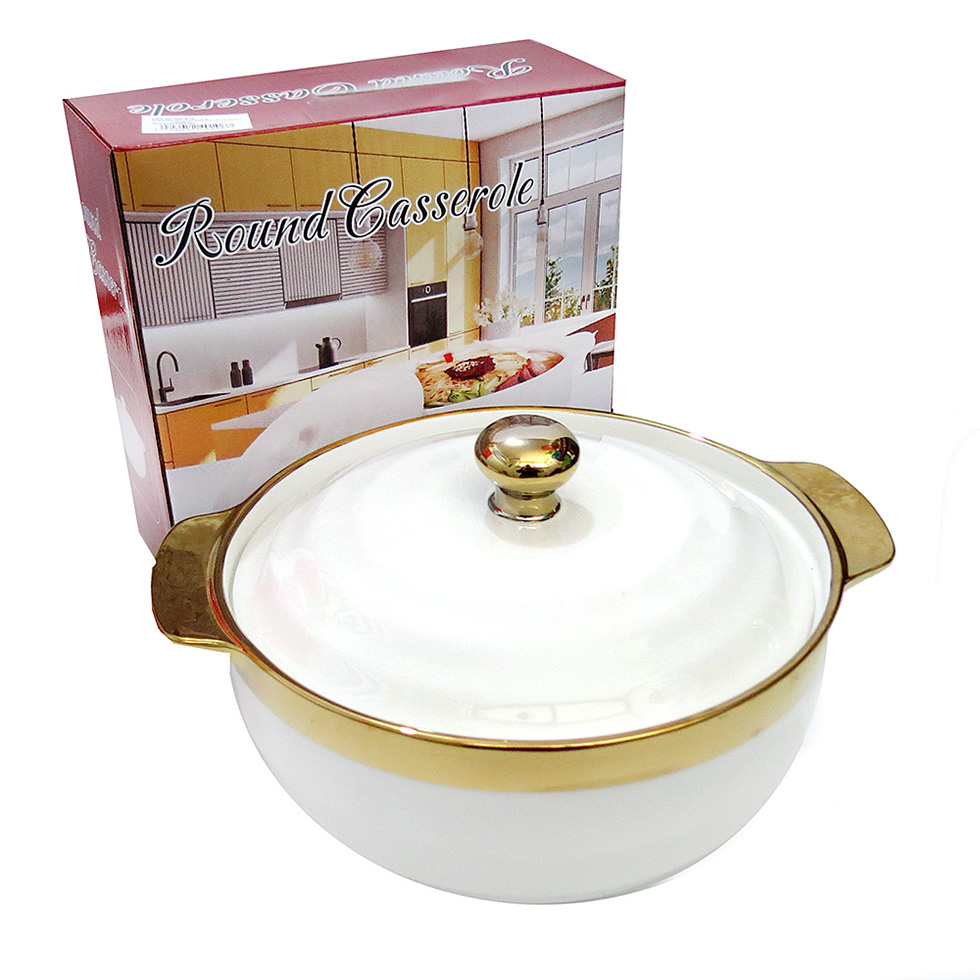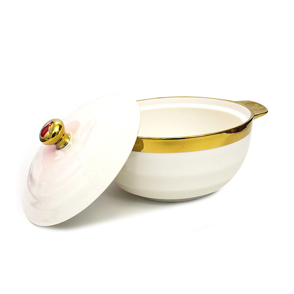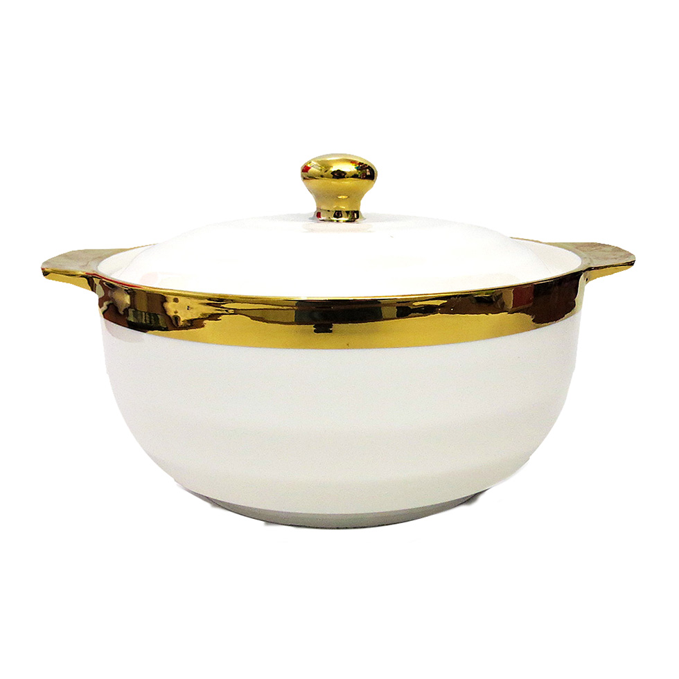 Olla loza borde dorado 2000 ml c/caja regalo 22cm diám x 10,5 cm alto